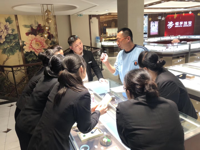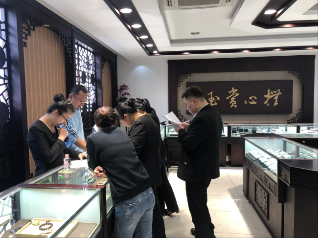 这一天和风暖阳,道玄子来到美丽的园林之城苏州,给苏州恒孚交付今年新货白玉,再给员工培训完。新货还没有摆放完,客户蜂拥而至,争相购买,新年开业大吉恒孚是几百年老字号,在苏州消费者信任度比周大福,老凤祥要高出不知多少倍了。在苏州这座中国和田玉精品集散地,大师云集,玉作坊林立的城市,作为恒孚唯一玉石供货商,拿出的件件都是精心挑选的精品、极品。