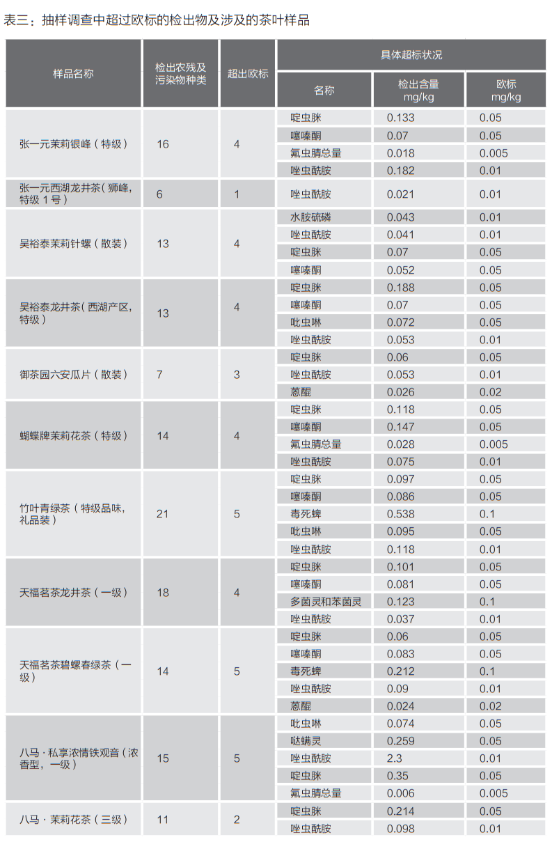 1)85%的常规茶样品检出农残或污染物超过欧盟标准